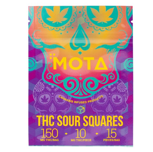 Mota is a Canadian marijuana infused edible company based in Vancouver Island that provides some of the worlds best THC edibles on the market. One of their most popular edibles that recreational and medical edibles love is Sour Squares which are 150 mg of THC with 15 squares containing 10 mg of THC.